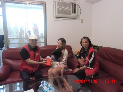 發放組:邱明雄 鍾育素等前往探視慰問並捐贈慰助金5,000元。