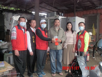 發放組:林源富 陳秀玲鍾育素等前往探視慰問並捐贈慰助金8,000元