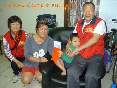 發放組:鍾育素等前往探視慰問,並給予一年之認養金24000元。 (12個月、每個月2000元)
