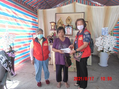 發放組:游阿絨 鍾育素等前往探視慰問並捐贈棺木補助費用。