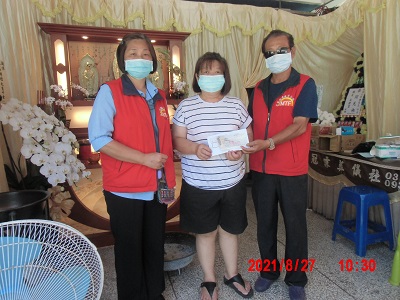 發放組:游阿絨 鍾育素等前往探視慰問並捐贈棺木補助費用。