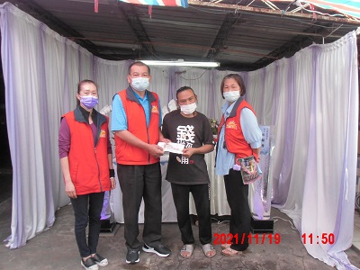 發放組:陳桂玉 鍾育素等前往探視慰問並捐贈棺木補助費用。