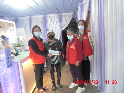 發放組:游阿絨 黃月里 鍾育素等前往探視慰問並捐贈棺木補助費用。