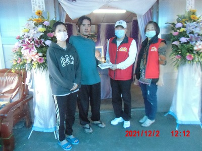 發放組:鍾育素等前往探視慰問並捐贈棺木補助費用。