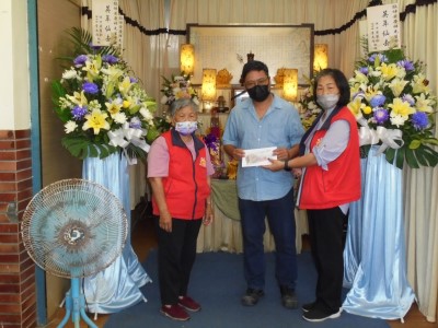發放組:游阿絨 鄧宜妹 鍾育素等前往探視慰問並捐贈棺木補助費用。